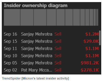 尽管Sansyzbayev对该股持看涨观点,但需要注意的是,公司内部人士在过去几周并未增持股票,反而出现了几起值得关注的减持交易。不过,内部人士未增持可能存在合理原因:他们通常会获得以股票为基础的薪酬。根据现金流量表数据,过去一年内,美光科技每季度的股票薪酬支出均超过2亿美元。