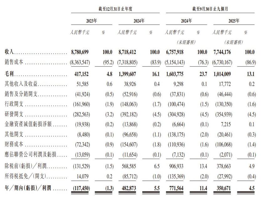财务方面,宏芯宇的收入规模保持高位稳健运行,2023年及2024年收入分别达约人民币87.81亿元及87.18亿元。截至2025年9月30日止九个月,公司收入实现同比增长14.6%,达到约人民币77.44亿元。值得注意的是,宏芯宇2024年成功扭亏为盈局面,实现年度利润约人民币4.83亿元。业绩增长主要得益于公司成功把握市场机遇,DRAM等产品线收入大幅跃升,成为驱动增长的新引擎,同时核心产品嵌入式存储持续贡献主要收入,产品矩阵多元且均衡发展。