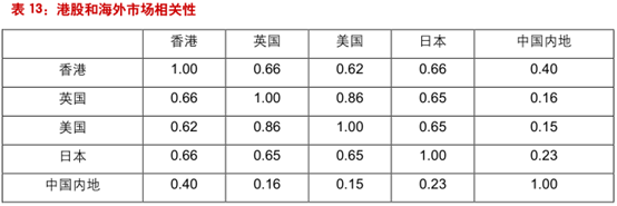 港股和海外市场、国内市场的相关性