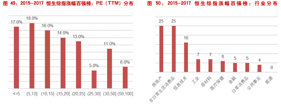 (2)估值不高::2017年底PE-TTM超过30倍的只有17家,占比17%;37%集中在5-15倍区域;这100家公司的PE-TTM分布如下表:
