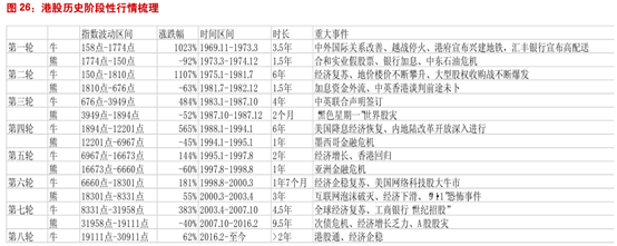 下面我们将港股七轮牛熊进行详细梳理,部分参考《港股50年走势回顾》、《香港股史1841-1997》: