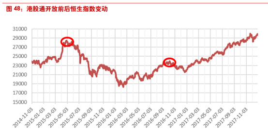 然而,随着接下来A股股灾爆发,恐慌情绪弥漫,港股受到波及,恒生指数也从2015年5月1日的28133点下跌至2016年底的22000点,跌幅达到11%。A股股灾后2016年港股逐步恢复,伴随着2016年底深港通的正式开通,南下资金日益增加。2017年中国内地房地产行业景气度大幅回升,带动港股地产、汽车等周期行业加速上涨。3月开始上游原材料价格开始上涨,经济复苏的预期越来越强。2016年3月至今恒指涨幅达62%。