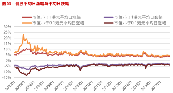 由于港股中仙股数量众多,因而我们对仙股的涨跌幅和流动性也进行了深入分析。