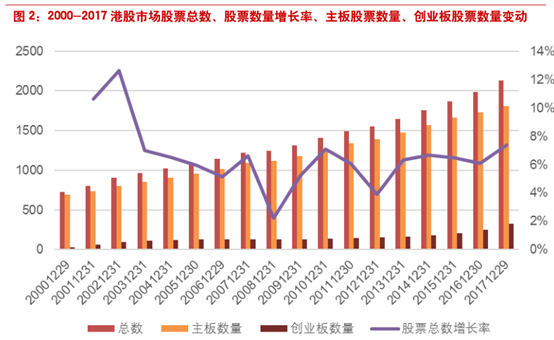 港股市场结构相对简单,包括主板和创业板两个板块,创业板成立于1999年11月25日。港股创业板上市标准和融资规则十分宽松:没有任何盈利记录要求,只需要经营两年(甚至可以申请下调标准至一年);创业板上市时可以选择不公开配售。这使得港股创业板的上市公司质量极差,市场规模发展缓慢。