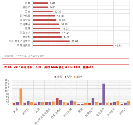 1.有三个市场中港股中估值最低的版块有99个个:能源、原材料、工业、非日常生活消费品、医疗保健、信息技术、电信服务、公用事业、房地产。金融板块在三个市场中估值均较低。金融和地产板块是港股市场中估值最低的板块。