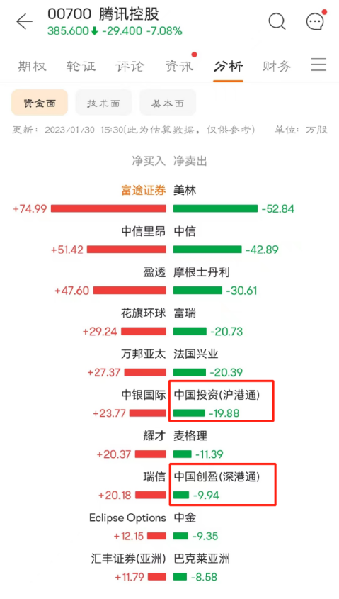 二是反弹过程中可能存在获利回吐式的波动。以腾讯控股为例,过去两个月,该股涨幅达120%,日前刚刚创下阶段新高,但今日大幅跳水,失守400港元。根据富途数据,截至下午15:30,沪深股通今日卖出该股约30万股,按400港元计,净卖出额约1.2亿港元。