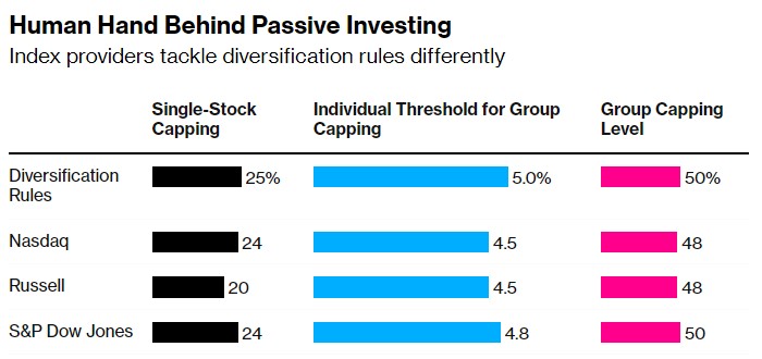 随着许多投资组合中最大科技股的持仓比例开始突破监管限制,各行各业的投资者都被迫做出调整。这两大指数巨头面临的压力也越来越大,它们的产品总共被35万亿美元追踪投资。