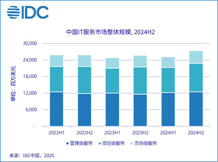 2024下半年,中国IT服务市场在复杂经济环境中保持韧性增长,印证了数字经济底座的核心价值。IDC报告指出,三大细分领域表现分化但亮点突出: