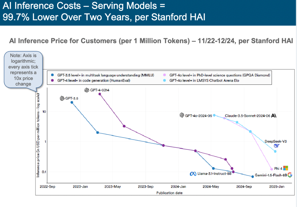报告揭露,虽然训练顶级AI模型的成本在过去八年里飙升了2400倍,但AI推理成本却在两年内暴跌99.7%。