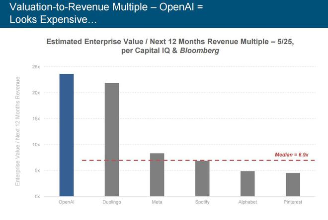 米克尔毫不客气地指出,OpenAI的估值与收入相比“看上去贵了”。