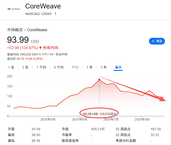 股票市场也开始显现怀疑情绪。人工智能风险和回报的典型代表CoreWeave今年早些时候进行了引人注目的IPO,但该公司股价已从峰值下跌近50%。