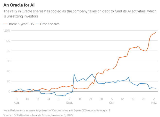甲骨文股价在2025年飙升了54%,有望迎来自1999年以来最强劲的年度涨幅。其人工智能驱动的收入激增使其成为华尔街最有价值的公司之一。然而,该公司信用违约互换(CDS)的激增表明,投资者对这家美国科技巨头的债务水平感到担忧。