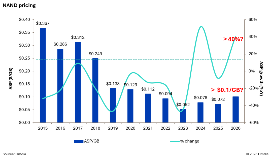 NAND价格复苏:上涨趋势将持续至2026年