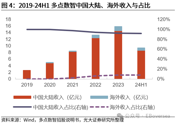 多点数智是中国最大的零售数字化解决方案提供商。多点数智为本地零售商提供数字化解决方案,24H1 92%的收入来自中国内地,海外业务已拓展至东南亚地区。根据弗若斯特沙利文,2023年多点数智的市占率以6.5%的收入市场份额位居中国第一,以4.2%的收入市场份额位居亚洲市场第三。