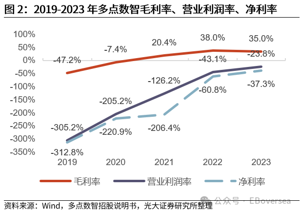 投资建议:多点数智拥有毛利率较高的操作系统业务作为基石,通过物美集团、麦德龙供应链集团等关联方的合作进行客户拓展,AIoT外包成本的快速下降有望驱动公司扭亏为盈。考虑到国内宏观经济低迷和企业IT付费意愿较低,公司的海外业务或将实现更高的抽佣率和利润率,加速公司实现盈利。同时,数字化转型也有利于零售商摆脱人工成本高、运营效率低的困境,看好AI数字化解决方案在零售垂类场景的渗透率持续提升,建议持续关注。