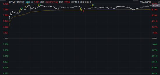新能源汽车股集体上涨,蔚来汽车涨7.67%,小鹏汽车涨9.35%,理想汽车涨1.7%。