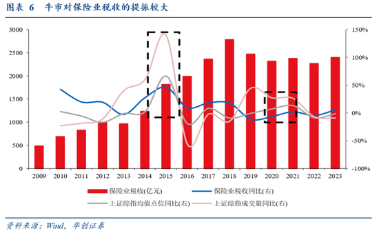 此外,牛市驱动保险业、非金融企业投资收益增长等,也能带来可观的税收增收。