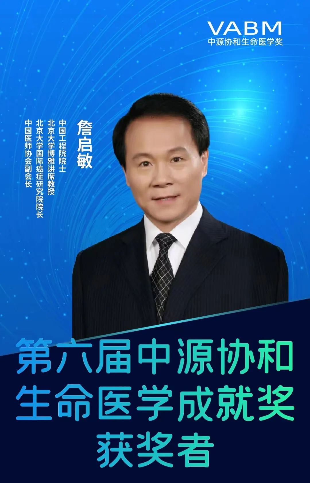 在4月2日举行的第六届中源协和生命医学奖颁奖典礼暨高峰论坛上,詹启敏院士获得了“中源协和生命医学成就奖”。