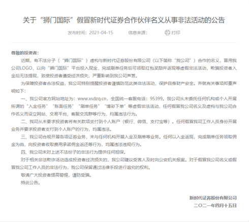 针对投资者投诉的有关“狮门国际”相关内容,新时代证券在官网也做了相关回复。