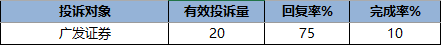 从证券公司处理情况来看,广发证券给予了积极响应,回复了15起投诉。