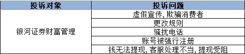 从证券公司处理情况来看,银河证券财富管理面对投诉从未给予响应。