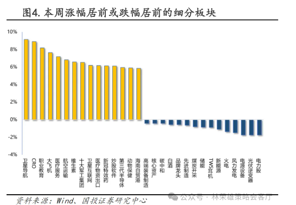 第一,上周上证指数涨0.5%,沪深300跌0.73%,中证500涨1.1%,创业板指跌1.28%,恒生指数跌1.69%。价值风格表现逊于成长风格,大盘股跌幅居前,行业方面卫星导航、CRO行业领涨。本周全A日均交易额7261亿,环比上周有所上升。