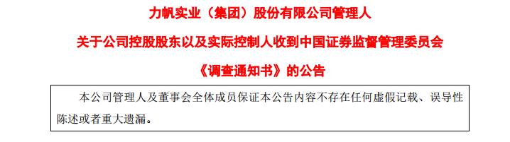 力帆股份在公告中称,此次立案调查事项系针对公司控股股东以及实际控制人的调查,与公司的日常经营管理和业务活动无关,对公司的正常经营不产生影响。