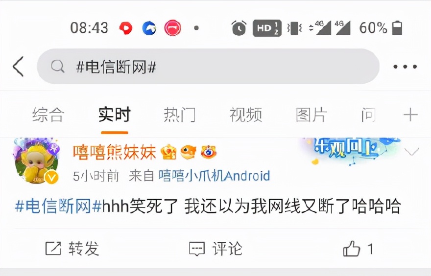 今日凌晨,微博有大量用户反映电信出现断网,波及全国多个城市,目前已经登上微博热搜。