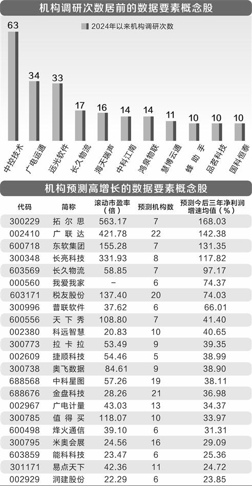 机构高频调研上市公司,通常意味着这些公司可能具有较好的投资潜力或成长性。据数据宝统计,今年以来,机构调研10次以上的数据要素概念股有11只,相当于每个月平均至少1次的调研频次。中控技术、广电运通、远光软件、长久物流、海天瑞声的调研次数居前。