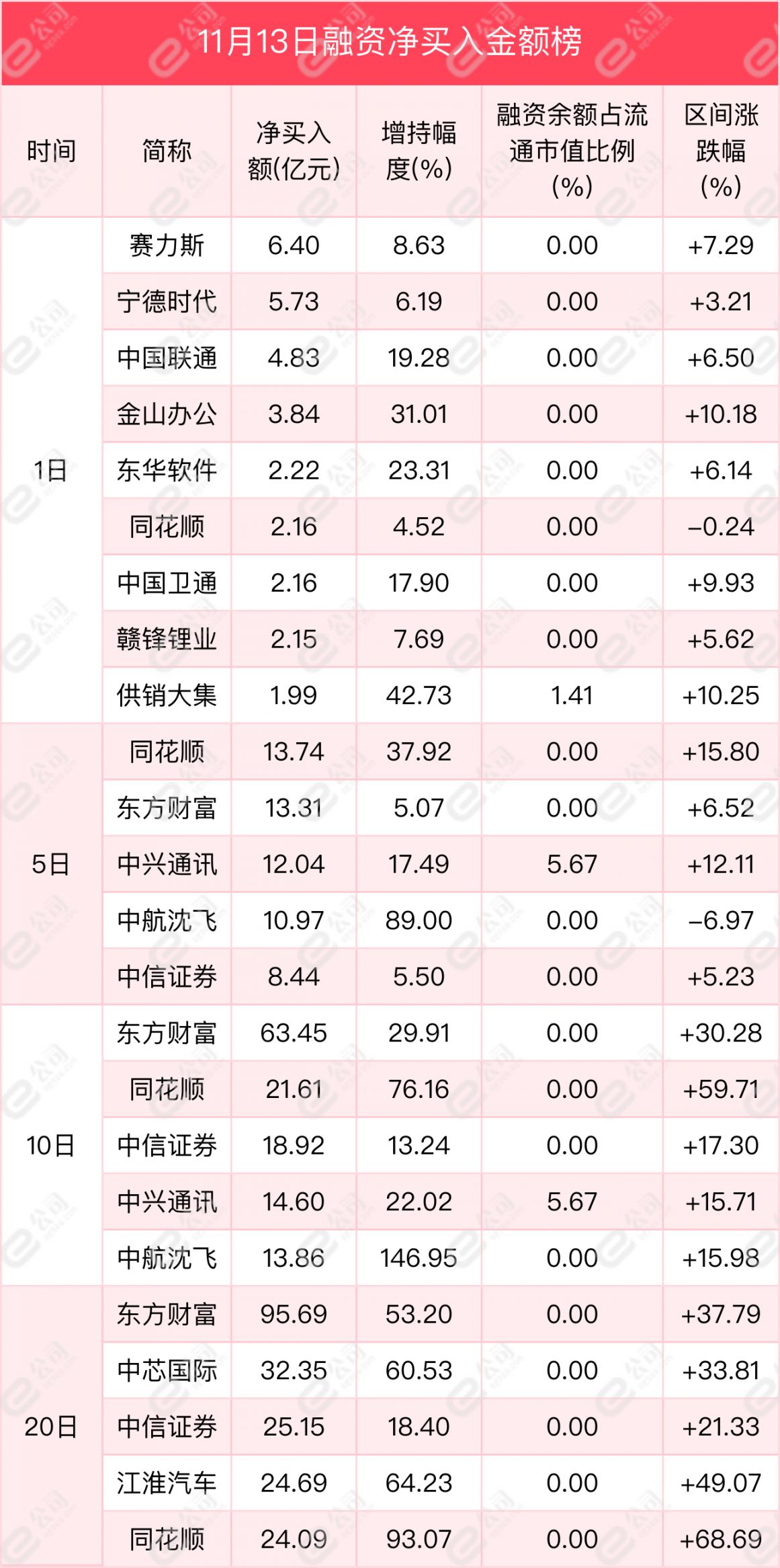 从买卖金额来看,赛力斯、宁德时代、中国联通获融资净买入金额居前,分别为6.4亿元、5.73亿元、4.83亿元,增持幅度分别为8.63%、6.19%、19.28%。