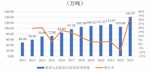 中国装饰原纸行业主要由齐峰新材、华旺科技和夏王纸业三家公司主导,市场份额合计近70%。据初步统计,2024年这三家公司合计新增产能超过20万吨,导致市场竞争加剧。为应对这一变化,齐峰新材在2024年三季度对装饰原纸售价进行了调整,平均单位售价较上年同期下降了484.92元/吨,导致主营业务产品单位毛利及毛利率相应下降。