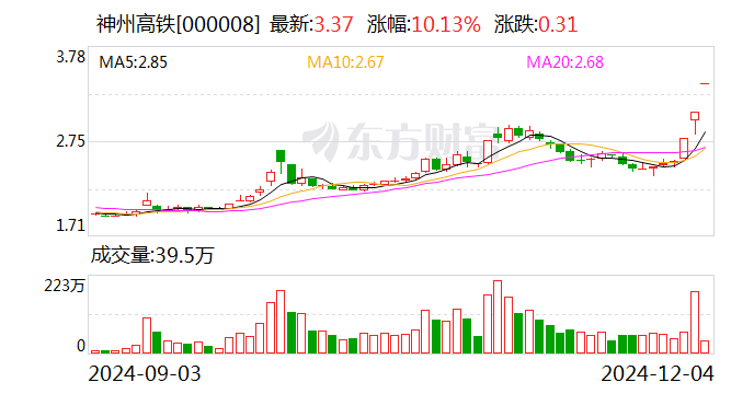 财中社12月4日电神州高铁(000008)发布股票交易异常波动公告。公司股票在2024年12月3日和12月4日连续两个交易日内收盘价格涨幅偏离值累计超过20%,根据深交所的相关规定,属于股票交易异常波动的情况。