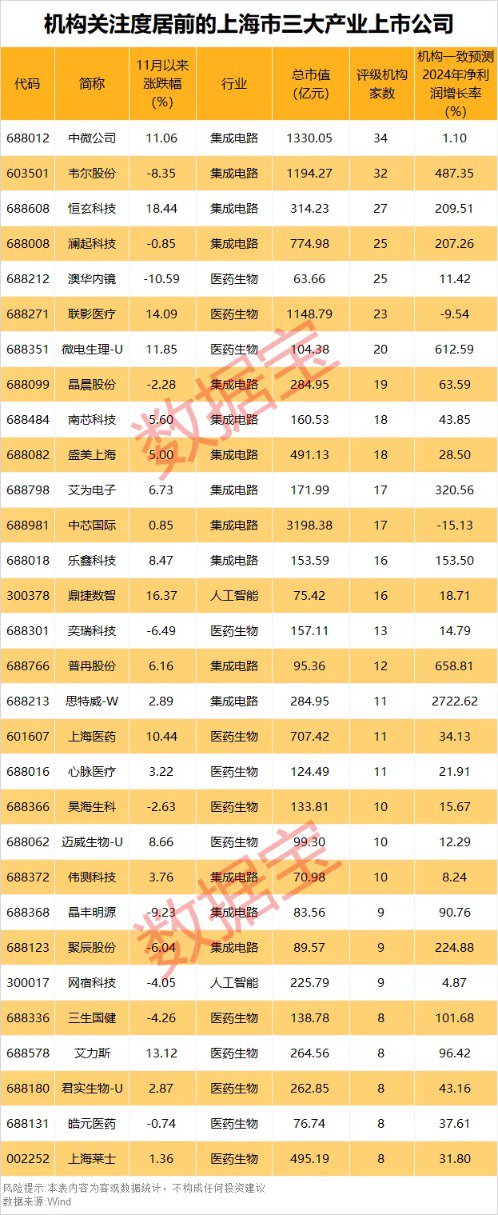上海市再度发布三大先导产业利好政策,在政策面、资金面等多方利好加持下,上海市前三季度三大先导产业制造业产值快速增长,相关上市公司备受机构关注。