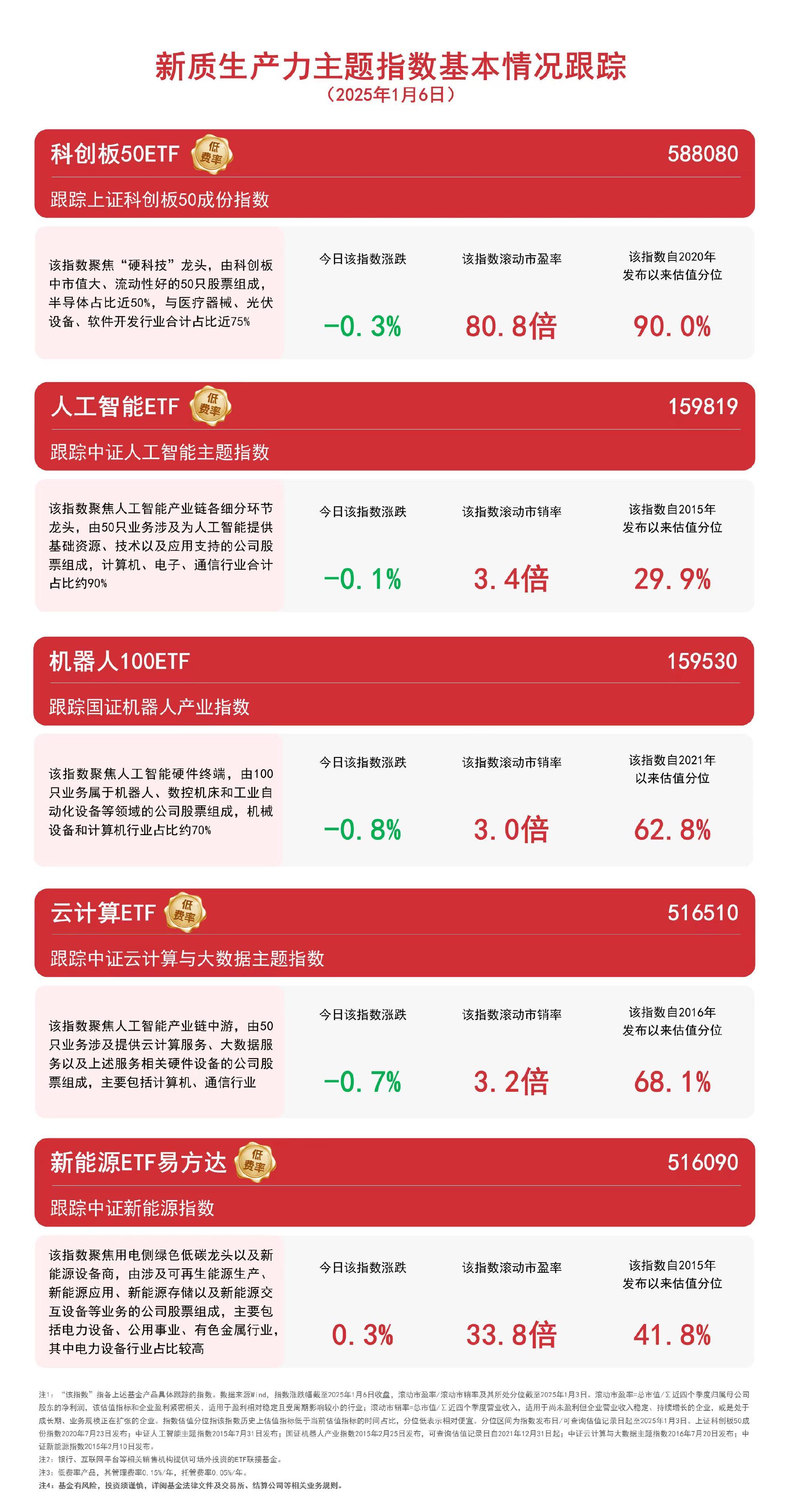 截至收盘,今日中证新能源指数上涨0.3%,中证人工智能主题指数下跌0.1%,上证科创板50成份指数下跌0.3%,中证云计算与大数据主题指数下跌0.7%,国证机器人产业指数下跌0.8%。