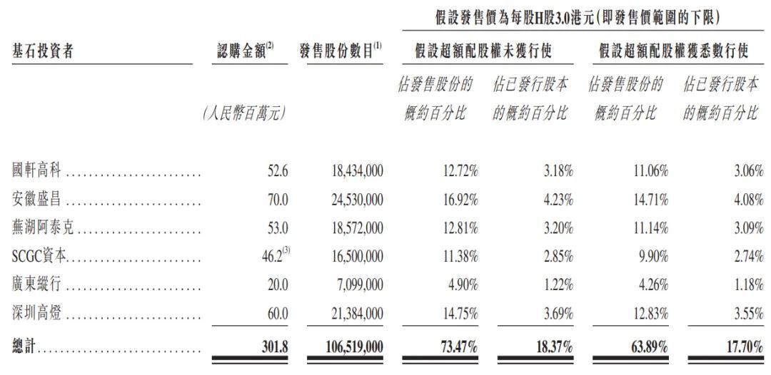 海螺材料的基石投资者分别包括国轩高科、安徽盛昌、芜湖阿泰克、SCGC资本、广东纵行、深圳高灯,一共认购3.02亿港元。