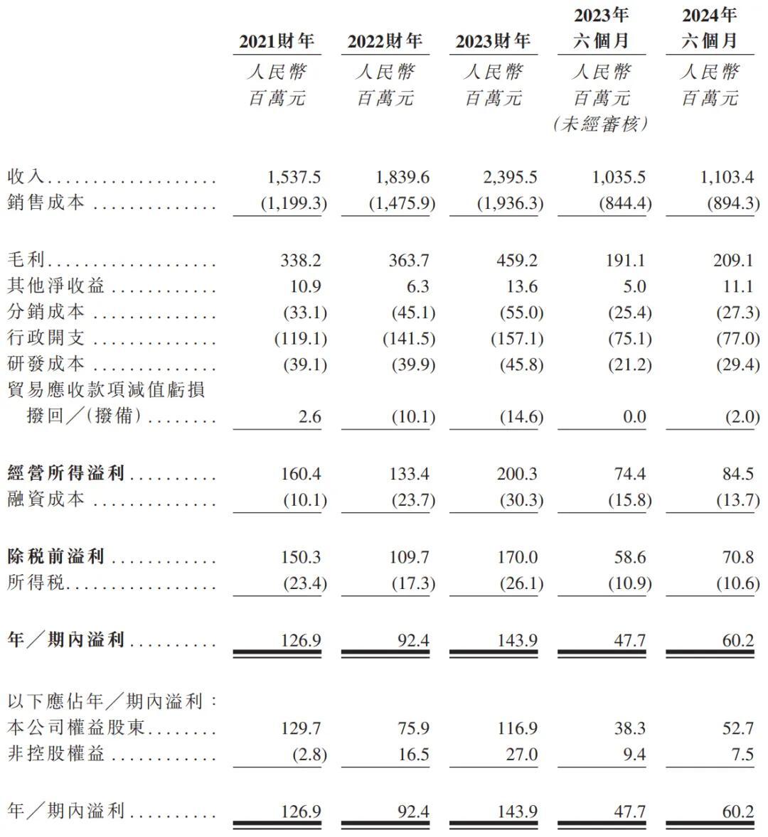 招股书显示,海螺材料在2021年、2022年、2023年营收分别为15.38亿元、18.4亿元、23.96亿元;毛利分别为3.38亿元、3.64亿元、4.59亿元;经营利润分别为1.6亿元、1.33亿元、2亿元;期内利润分别为1.27亿元、9240万元、1.44亿元。
