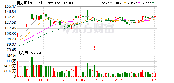 2024年,赛力斯累计实现汽车销量49.7万辆,同比增长96.98%。其中,新能源汽车销量42.69万辆,同比增长182.84%。