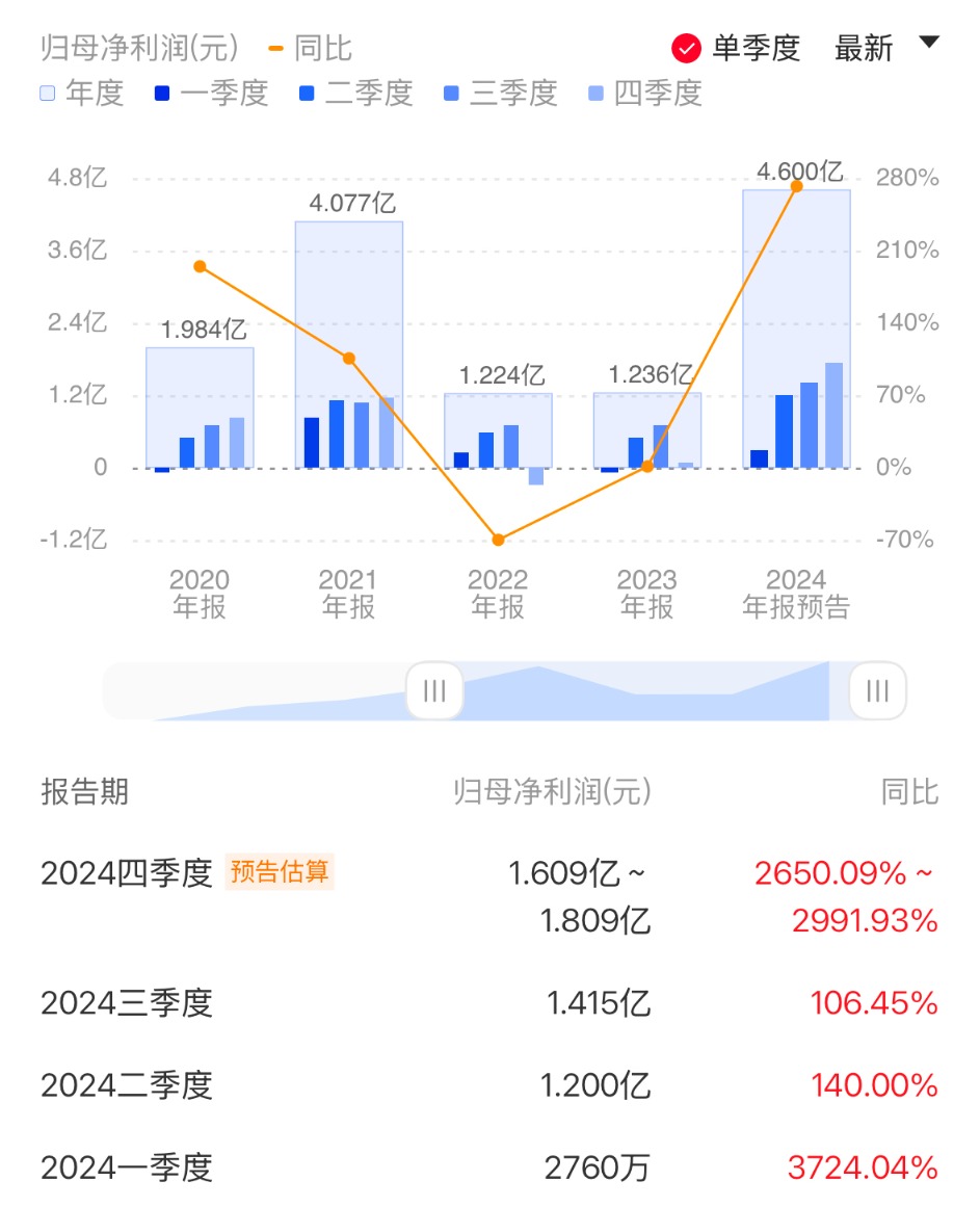 净利润数据的增长更为可观。恒玄科技预计,2024年度实现归母净利润4.5亿元到4.7亿元,同比增长264%到280.18%;归母扣非净利润则预计为3.84亿元到4.04亿元,同比增幅预计达到1242.08%到1311.98%。