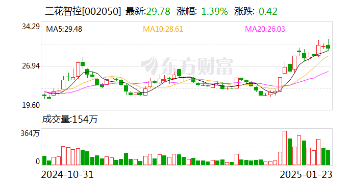时间回溯到2024年12月26日,三花智控股价大幅上扬,涨幅达7.81%,成交额达111.74 万手,换手率为3.04%。12月27日,公司股价更是直接涨停,成交额一下子攀升至31.72亿元,换手率也随之升至3.59%。