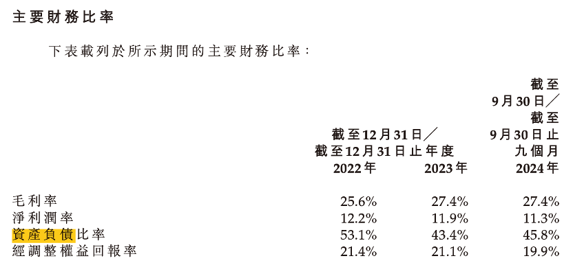 报告期内,公司的资产负债率呈现出一定的波动变化,2022年末为53.08%,到了2023年末下降至43.36%,降幅达9.72个百分点,2024年前三季度又回升至45.8%。