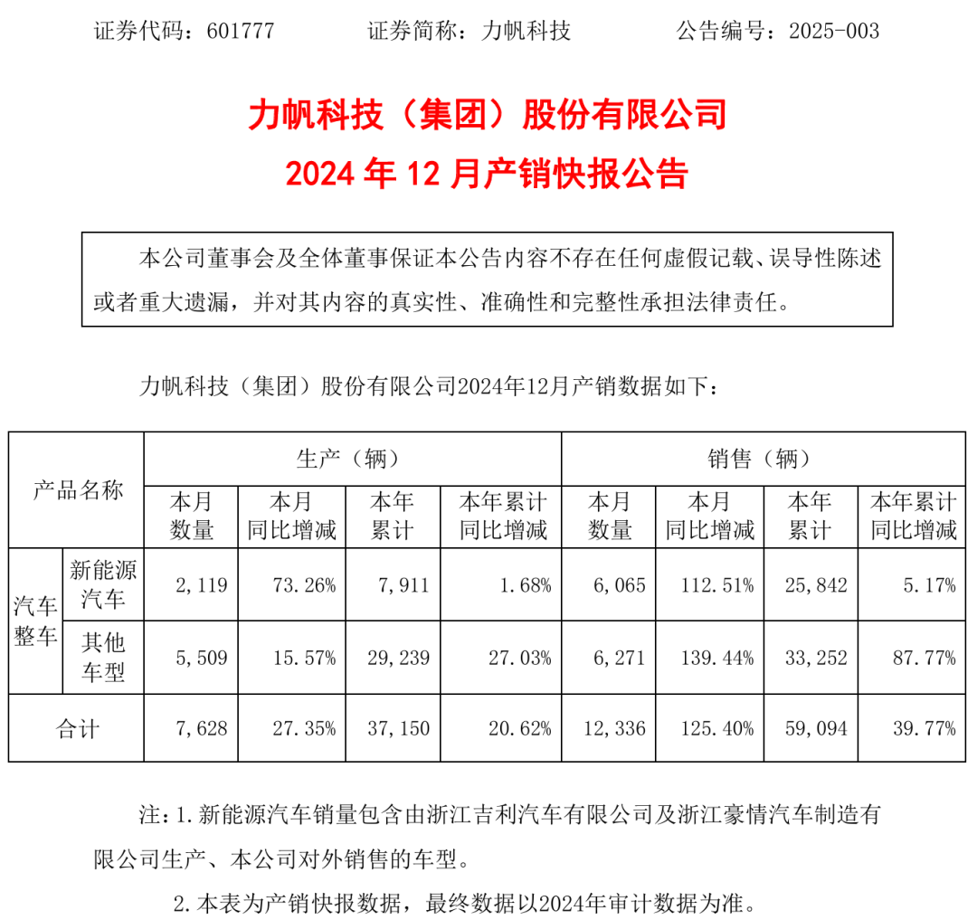 资料显示,力帆科技(集团)股份有限公司创立于1992年,前身为力帆股份,是汽车行业首家上市的民营乘用车厂商。2010年11月25日,力帆在上海证券交易所成功上市。2020年7月,力帆因不能清偿到期债务,多家子公司被债权人向法院申请司法重整,公司将存在因重整失败而被破产的风险。同年12月,力帆宣布重整成功,控股股东由力帆控股变更为重庆满江红股权投资基金合伙企业(有限合伙)(下称“满江红基金”)。吉利通过满江红基金,一跃成为了力帆最大股东,持股达到29.99%。2021年12月,吉利汽车发布公告称,公司拟与力帆科技共同投资设立合资公司,目标公司注册资本为人民币6亿元,吉利控股与力帆科技各出资3亿元,持股比例均50%。
