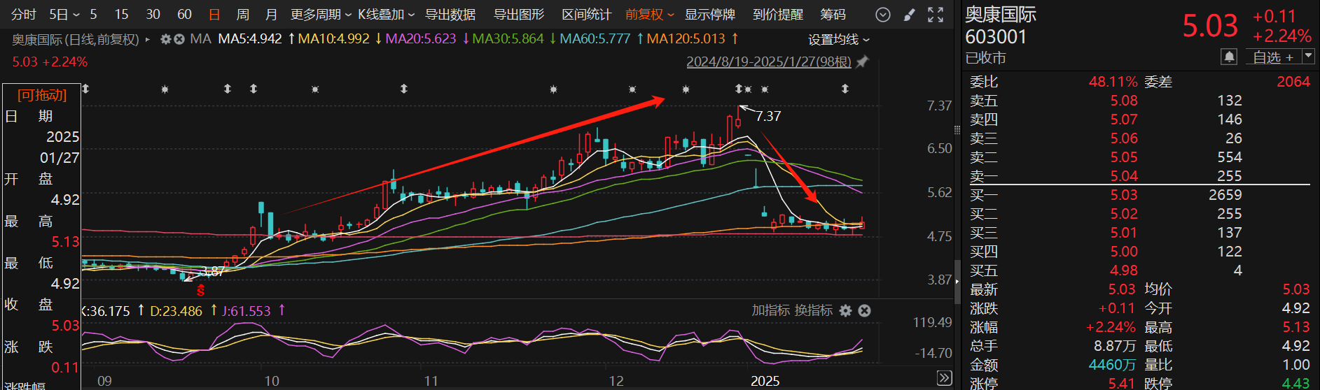 曾经的“男鞋大王”奥康国际1月7日公告,公司原拟筹划以发行股份及或支付现金的方式购买联和存储科技(江苏)有限公司股权事项。但交易各方对交易方案进行多轮协商和谈判后,对本次交易的最终交易条件未能达成一致。从维护全体股东利益的角度出发,公司决定终止筹划本次发行股份购买资产事项。公司承诺自终止本次发行股份购买资产事项公告之日起6个月内不再筹划重大资产重组事项。公告次日,奥康国际复牌一字跌停,并于1月10日连吃三个跌停。