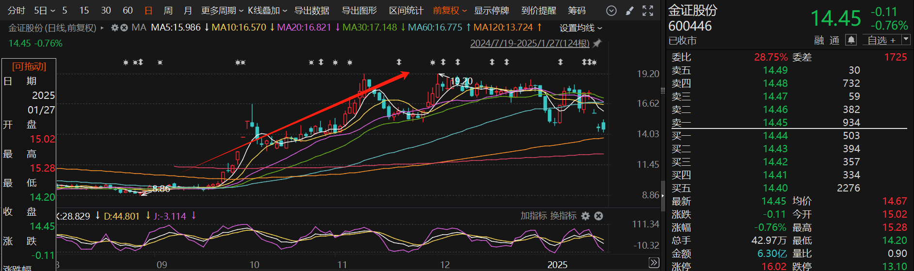 国内最大的金融证券软件开发商和系统集成商之一金证股份1月22日公告,因筹划控制权变更事项,公司股票自2025年1月16日起停牌。停牌期间,公司就筹划控制权变更事项进行了充分探讨,但由于涉及事项较多,与交易对方就核心事项未达成共识,经慎重考虑,公司决定终止筹划本次重大事项。公告次日,金证股份复牌收盘跌停。但拉长时间看,自8月28日迄今金证股份股价累计最大涨幅达116.7%。