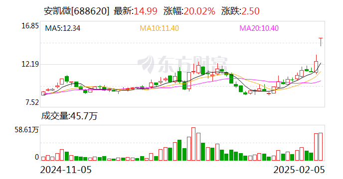 每经AI快讯,2月5日,安凯微公告,公司股票交易连续三个交易日内(2025年1月24日、2025年1月27日、2025年2月5日)收盘价格涨幅偏离值累计达到30%以上,属于股票交易异常波动的情况。经自查,公司目前生产经营活动正常,内部经营秩序正常。近日,基于公司AK39系列芯片的AI智能录音笔方案推出市场,鉴于该产品刚推出市场不久,对公司业绩贡献存在不确定性,敬请投资者注意投资风险。除此之外,公司所处市场环境、行业政策未发生重大变化。