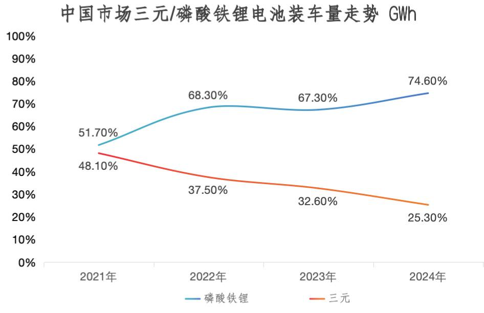特约作者 | 姜古松编辑 |邱锴俊2024年,中国动力电池累计装车548.4GWh,同比增长41.5%。市场基盘确实在扩大,但受益者并非所有人。从整体来看,宁德时代以45.08%的市占率,继续大幅领跑全行业。而比亚迪在混动市场采取“大油箱、小电池”的战略,拔高了其混动产品的增速,但其电池业务受之影响,装车量同比下降了2.52个百分点,达24.74%。两家头部电池企业合计吃掉了近七成市场份额,剩下约三成留给其余53家电池企业瓜分。但从当下数据来看,二线电池企业面临的问题不仅仅是要在宁、迪两座大山的夹缝中求生。根据动力电池产业创新联盟数据,2024年国内电池厂商前15名内,广汽的因湃电池与吉利的耀宁新能源首次杀入榜单,同时,极氪旗下极电新能源以6.27GWh的装车量位列第12名,同比增长1.1个百分点,市占率增长仅次于宁德时代。二线电池企业,另一个威胁开始出现:车企自供电池产能的逐步释放。此前,部分二线电池企业至少还可以争做头部的二供,再寻求“转正”,没想到,等来的,却是主机厂自供电池厂的上位。【福利:如需中国汽车动力电池产业创新联盟发布的2024年12月动力电池月度报告,关注“电动汽车观察家”公众号,在对话框输入“电池年报” 或“电池报告”即可获取本PPT下载链接。注意,该报告版权属于中国汽车动力电池产业创新联盟。】01铁锂大涨,谁获益最多?根据中国动力电池产业联盟发布数据,磷酸铁锂电池2024年全年累计装车达409GWh,同比增长达56.7%,贡献了2024年国内电池市场的大部分增量。其市占率也首次突破70%,将三元电池市占率压制到30%以下。
