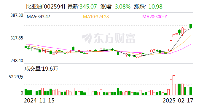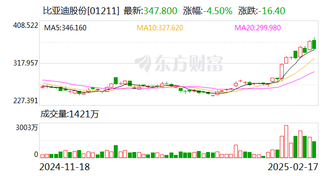 每经AI快讯,2月17日,截至目前,比亚迪股份(01211.HK)港股跌超5%,比亚迪A股跌超1%。