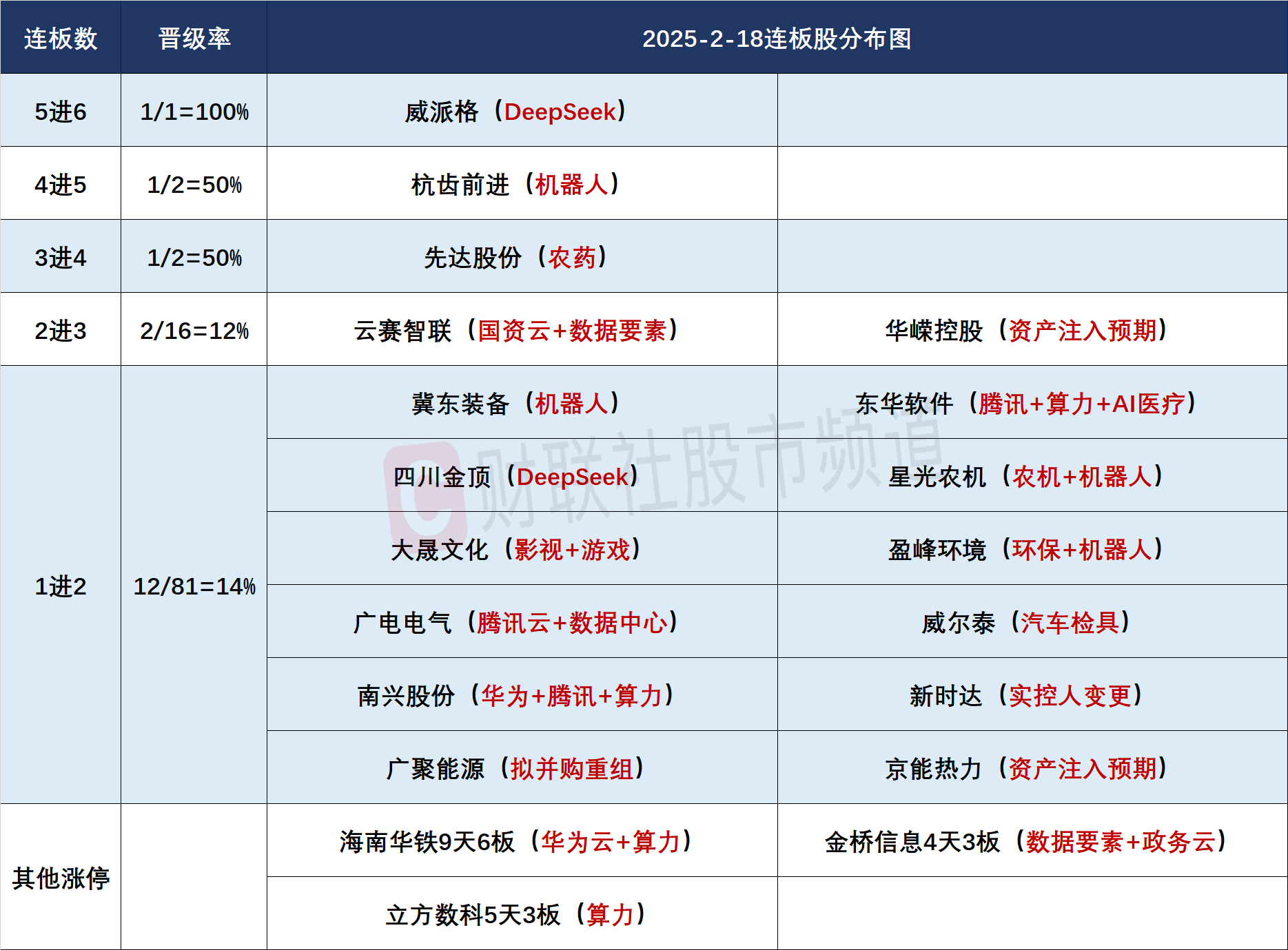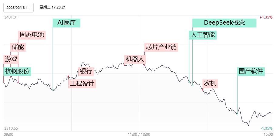 连板股晋级率降至22%,三板及以上连板股家数降至5只,昨日晋级9连板的杭钢股份缩量T字封死跌停,直接引发DeepSeek概念为首的AI方向高位股大面积遭遇A杀,梦网科技、日海智能(维权)、数据港等多股惨遭跌停,进而拖累AI医疗、AI教育等低位应用分支也跟随大面积补跌。随着AI产业链的分歧加大,锂电池、储能、固态电池等新能源方向再度得到资金挖掘补涨,华自科技、星云股份双双录得20CM涨停。但固态电池等新能源产业链的走强与指数难以形成共振,因此短期其仍属分支过渡热点。机器人概念近期走势表现相对独立,长盛轴承等多股迭创新高,与AI产业链的资金持续外溢紧密相关。