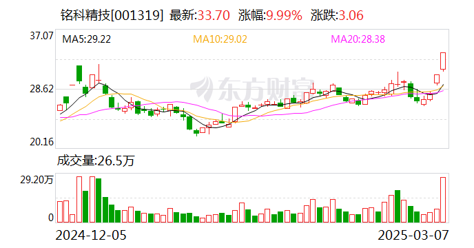 人民财讯3月9日电,铭科精技(001319)3月9日晚间发布股票交易异常波动公告,近期,公司长期战略客户赛力斯即将发布并推广其新款车型“问界M8”,该车型市场关注度较高。公司为该项目提供模具工艺及零部件生产支持,并已于2024年6月启动样件生产交付,预计近期将随车型上市进入量产阶段。该项目生命周期预计为三年,期间新增产值预计在3.1—6.3亿元,但实际量产时间和产值增长仍受该车型上市进度及终端销量影响。当前该项目仍处于样件交付阶段,对公司2025年全年经营业绩的贡献暂时有限。