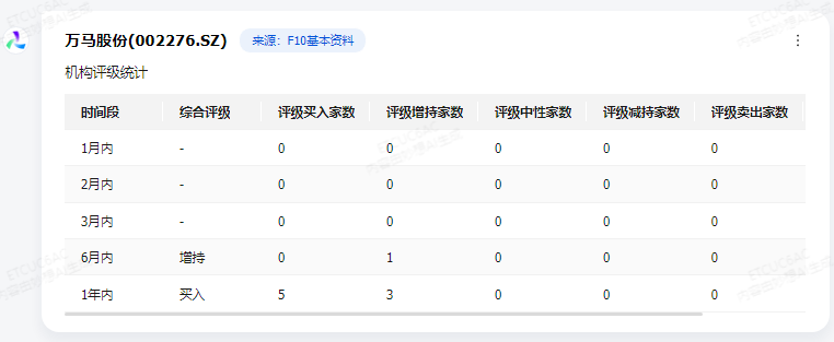 今年以来,万马股份累计上涨111.47%。该股的机构评级如何呢?东方财富妙想金融大模型回答如下: