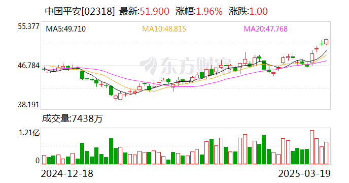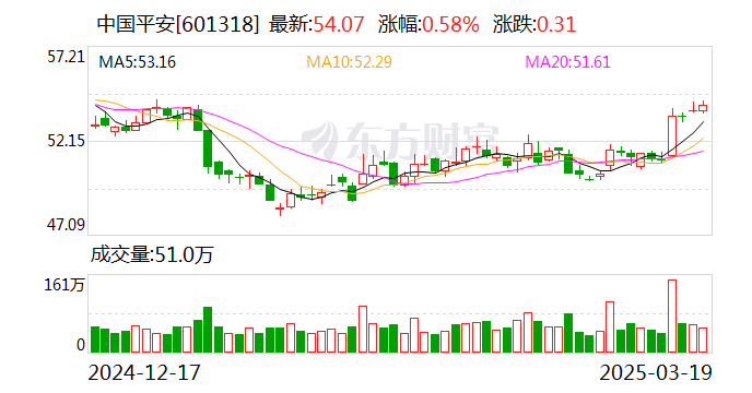 截至今日收盘,中国平安(601318.SH)报收54.07元/股,涨0.58%;中国平安(02318.HK)报收51.9港元/股,涨1.96%。
